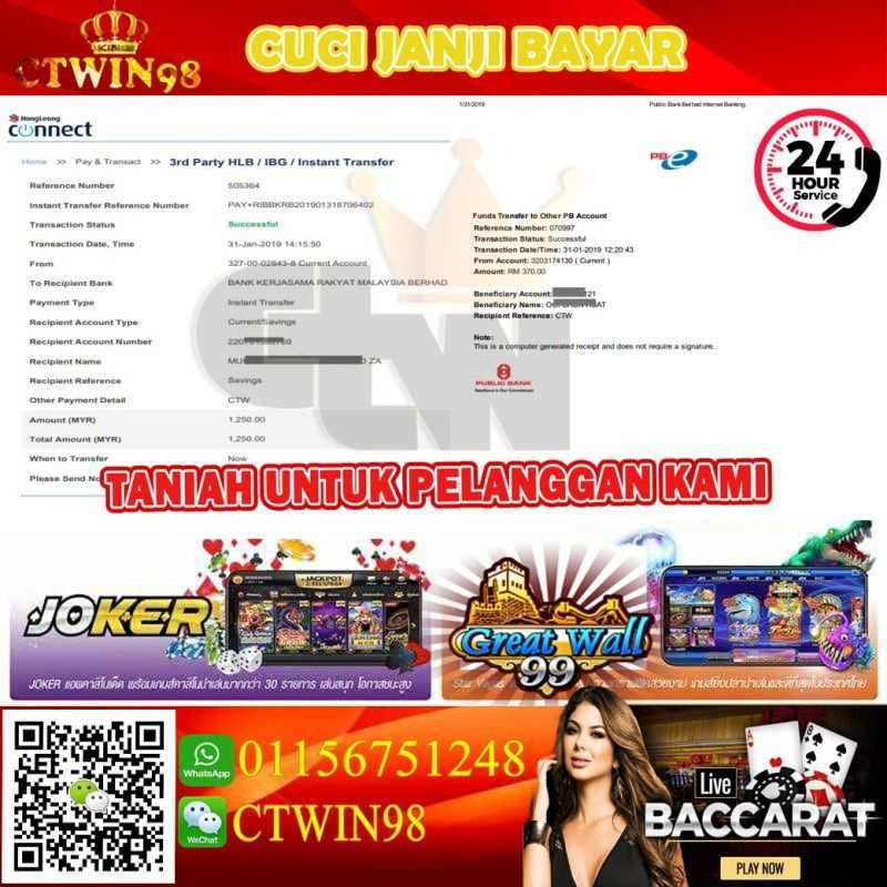 Tahniah ye bossku dah berjaya cuci bermain game JOKER di company trusted CTWIN98 bagi member pecinta permainan slot game JOKER atau 918KISS boleh join kami dengan cara klik link whatsapp kami ini bossku >> http://bit.do/ctwin98 #CTWIN98 #TRUSREDCOMPANY #SLOTGAME #JACKPOT #918KISS #JOKER